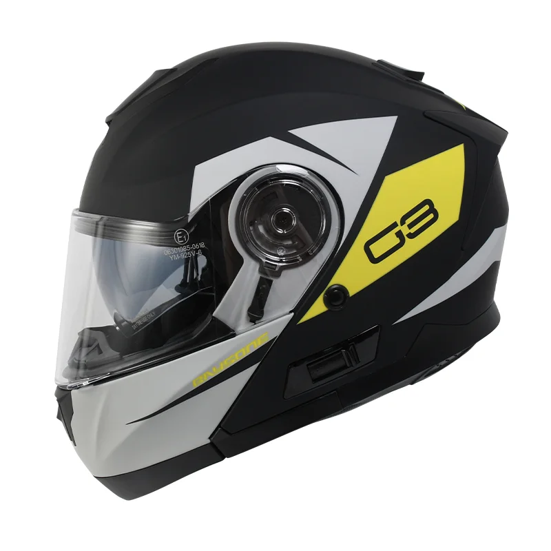 Le casque modulable BAYSONE est conçu pour les motards exigeants, recherchant à la fois sécurité, confort et praticité. Grâce à sa conception ingénieuse, il permet une utilisation 2-en-1, passant facilement du mode intégral pour une protection maximale au mode jet pour plus de liberté et de ventilation en milieu urbain.